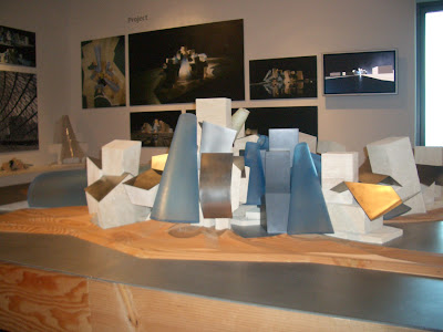 This is the model for the Louvre, by Jean Nouvel. In the background of this photo you can see an image on the wall that was created to show what you would see from the inside of the building when you look up. With all of these tiny holes and windows all through the ceiling it looks like the sky sparkles from inside. Beautiful! It really looks magical!