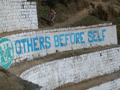 We talked to a group of guys around our age who owned a small cafe. (that was a bad picture, and my batteries ran out right after that…) They were so cool, all of them wearing “Peace” t-shirts with the Tibetan flag on them. They can’t travel outside of India, because they can’t get Tibetan passports; only Chinese passports are available for the people of Tibet. The refuse to have a Chinese identity through a passport. Because they live in India, they are eligible for Indian passports, but they refuse because they aren’t Indian. This silent but powerful protest was amazing. I was overwhelmed by their cultural pride, and I was so impressed by their decision to stay true to their heritage. I felt so guilty thinking about how easy it was for Tim and I to travel to any country we dreamed of going to, how lucky we are, how good we have it. This movie was another reminder to me of how lucky I am. I have my health, I can see, I have political freedom. It’s a reminds me to remember Tibetans, learn about their culture, to help educate other about their situation, and help them preserve their heritage by not forgetting them. The Tibetan Children’s Village, a school for Tibetan refugee children in Dharamsala is below: (pretty powerful right?)