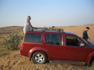 navigation, and for rescuing cars that get stuck in the sand. After driving for about 15 minutes through the sand dunes we found our spot. When the car drives over the sand it skids back and forth, it’s the strangest feeling, kind of like floating or almost like a boat on water! About 2 minutes later, the other car got stuck. Have no fear, Larry Schwab is here!