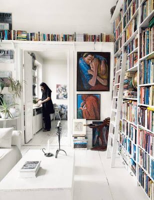 In my new house, one of my first missions is to create a full wall bookshelf, complete with a ladder. I know bookshelves are floating around blog land like crazy, but I can’t get enough! Tim and I feel bad that our books have been hidden in boxes for the last year, it’s time that we bring them out and give them life! Only a few more weeks until we move in!!!