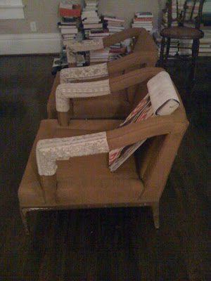 The chairs are mid century, shown here without their cushions (we only took one set to match for size, which smell like mildew and hot sweaty old beer). I plan on covering them in a wild, crazy, colorful ikat. They were FREE! Ha, free because they were in the trash covered in black garbage bags full of beer cans at our camp in Louisiana. Hence, the name: dumpster chairs. (oh, and those books stacked against the wall are waiting for a bookshelf, which will be floor to ceiling, painted the wall color, when it gets chosen)